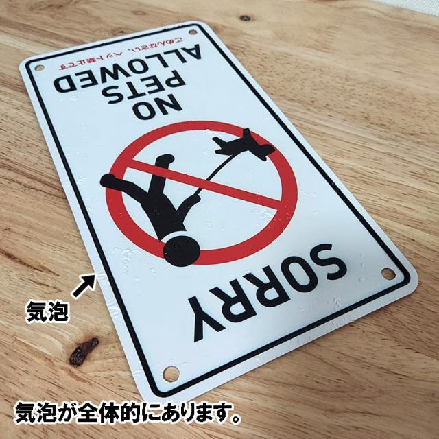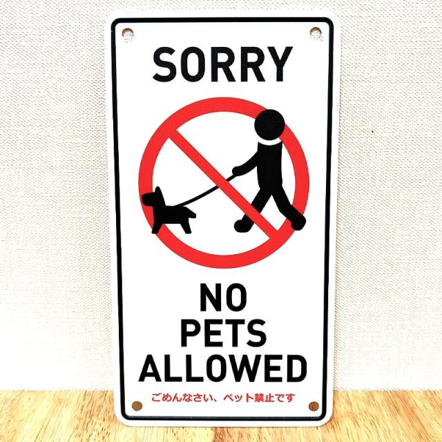 ペット禁止のメッセージがデザインされたアルミ製のブリキ看板です。