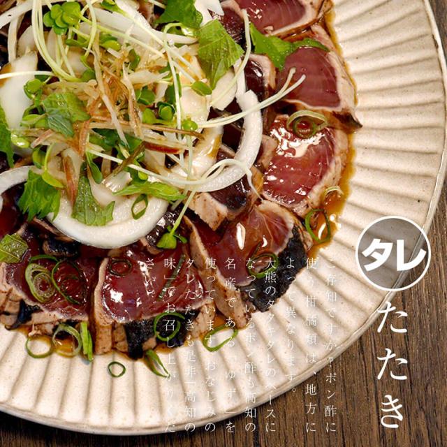 【カツオにこだわり!大熊の特大かつお!】 とろかつおとも呼ばれる、特に脂ののりが良いお盆明けから11月初旬に一本釣り漁で水揚げされる三陸沖の戻り鰹を厳選しました。 3節で約700g、特大サイズの大きな戻り鰹だから出来る、ジューシーで美味しいタタキに仕上がりました。 漁獲後、船上で活きたままB1(ブライン凍結一級品)によって瞬間冷凍しますので、新鮮そのもの。 ※賞味期限は発送後30日です。 【美味しいたたきの秘訣は火力にあり!】 藁焼きだからできる「強い火力と燻煙」 一気に香ばしく焼き上げたカツオタタキ、魚の臭みを消し去ります。 さらに他の焼き方と比べ、身崩れもなく色変わりもしにくいという特徴もあります。 鮮度、肉色、味、香りに至るまで最高の状態でご提供出来る商品です。 【大切な方への贈り物やご家族・仲間とのパーティーのメインに】 一節毎の真空パックですので、少人数のご家庭でも都度解凍して食べられますのでご安心ください♪ お歳暮、お中元など、お世話になった方へのお礼や父の日や敬老の日など、ご家族で一緒にお家で美味しい食卓を囲むもよし。 美味しいメインディッシュで盛り上がりましょう! 【特製タレもたっぷりお届け!野菜も一緒に召し上がれ!】 野菜や薬味とカツオの相性を考え抜いた特製タレ。 大葉、しそ、みょうが、にんにく、たまねぎ、レタス等お好みの薬味や野菜をたっぷりのせてカツオと一緒にさっぱりをお召し上がりください。 大熊のタレ、実はサラダのドレッシングとしても人気です。まさに和製カルパッチョ。 【高知の味を思い出す柚子の風味】 ご存じですか?ポン酢に使う柑橘類は、地方によって異なります。 大熊のタタキタレのベースになっているポン酢も高知の名産である「ゆず」を使っています。 かつおと一緒に食べるネギ・ミョウガ・ニンニクとも相性抜群。「高知の味」をお召し上がりください。 |