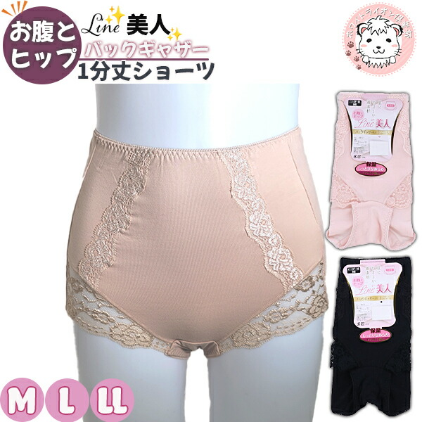 お腹とヒップ Line美人 足口レース 1分丈ショーツ 2枚セット 保湿 しっとり M/L/LL | ボクサーショーツ パンツ レディース 綿混 ショーツ