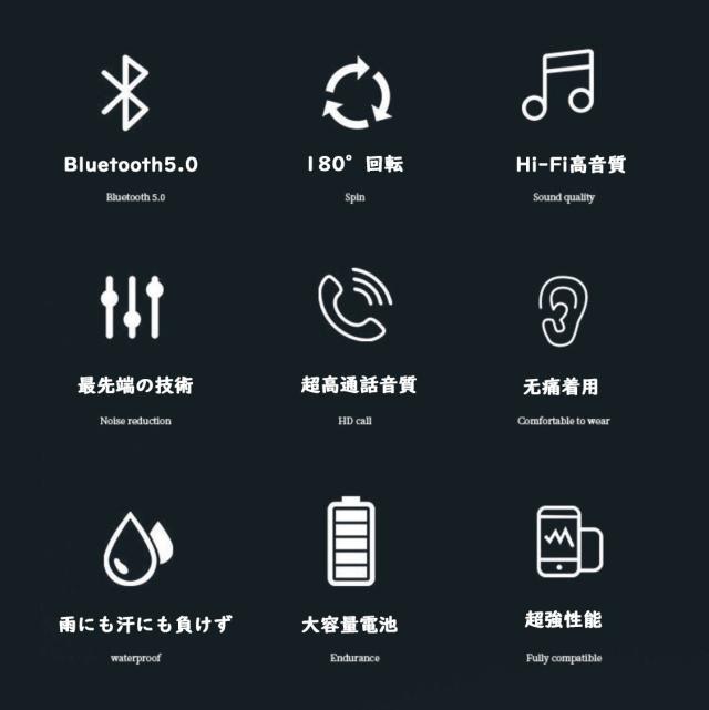 超大容量バッテリー内蔵により、長時間通話可能,驚きの長使用時間を誇ります。Bluetoothイヤホンの電力不足を有効的に解決したことで、充電切れによって音楽や通話が妨げられることはありません。