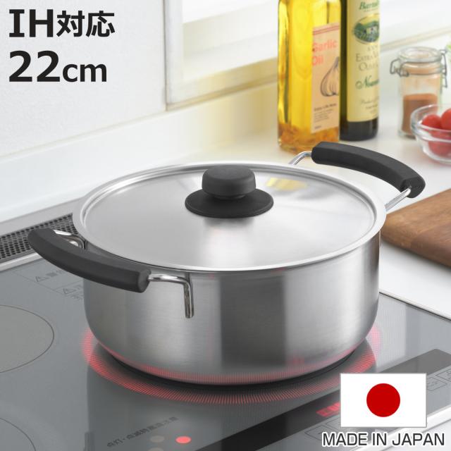 両手鍋 22cm IH対応 シーズ・クッキング ソースポット 日本製 ( ガス火対応 両手なべ ステンレス鍋 蓋付き 22センチ フタ付き鍋 鍋 なべ ステンレス製両手鍋 調理器具 キッチン用品 おすすめ )