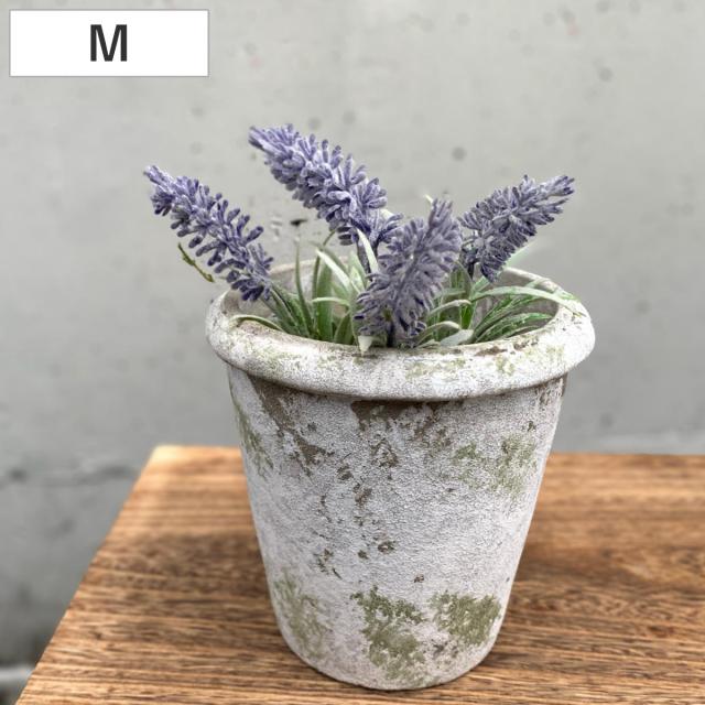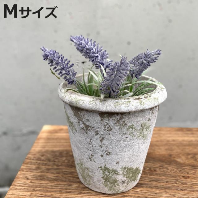 アンティーク感のある植木鉢ポット Mサイズです。苔を思わせるような自然で味わいのあるデザインで、シンプルながらもお部屋を上品に演出してくれます。