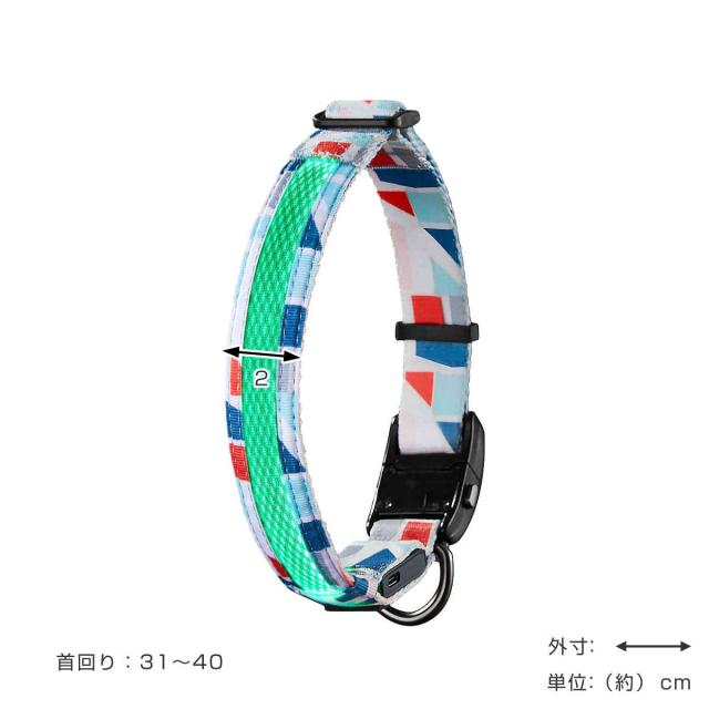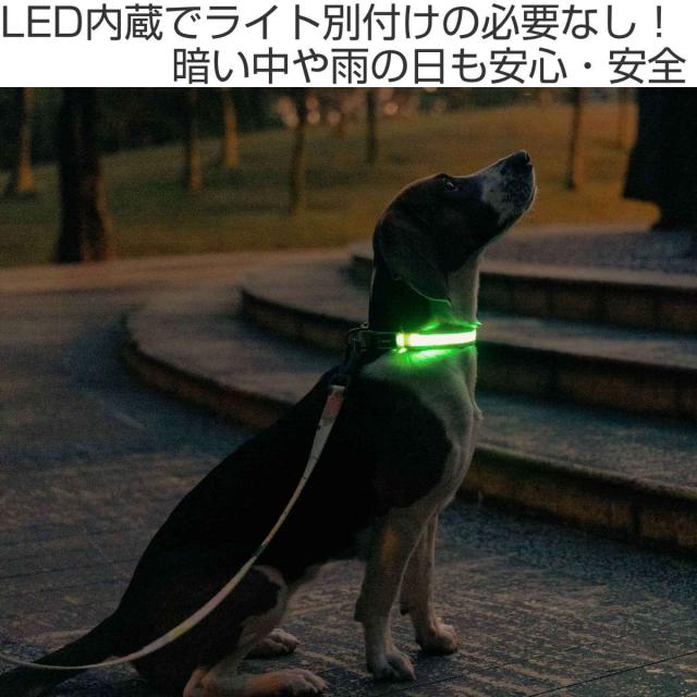 LEDライトが内蔵されている、犬用首輪です。体重10kgまで、首回り31〜40cmのわんちゃんにぴったりです。ライトを別付けする必要がなく、暗い中でも愛犬の存在を周囲に知らせることができ、安心・安全です。