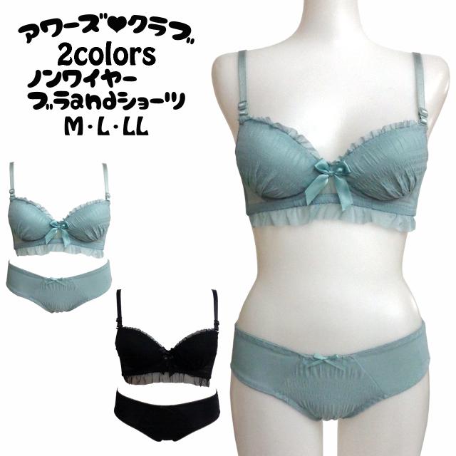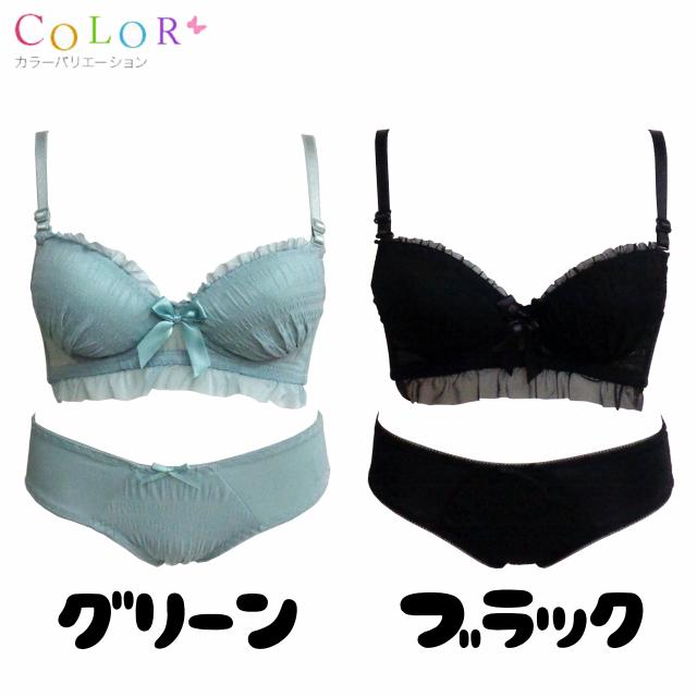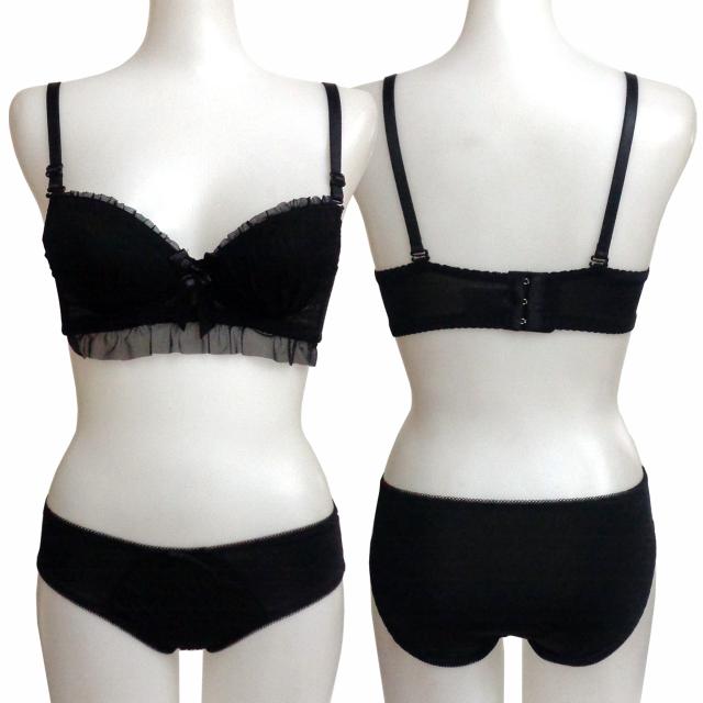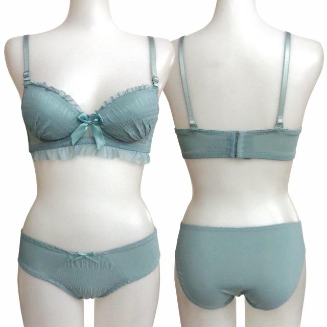 メッシュフリルレースでらくらくノンワイヤーブラジャー&ショーツ