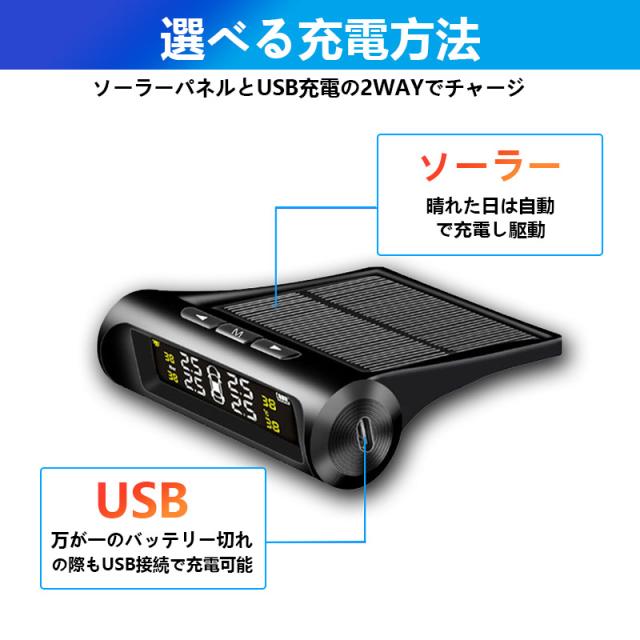 タイヤ 空気圧モニター 空気圧センサー 車 タイヤ交換 ゲージ 空気圧計 チェッカー 空気圧計 USB充電 温度 監視 ワイヤレス ソーラー充電 無線