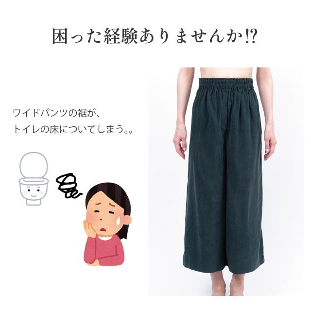 トイレでワイドパンツの裾が付くことを防ぐ裾ゴム付きで超便利!
