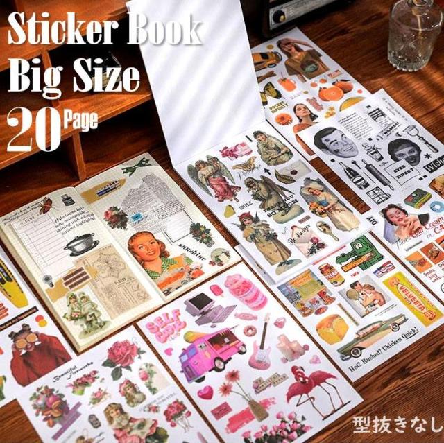大容量 マステシールブック◆20ページ 型抜きなし 大きめ◆ コラージュ素材 海外ステッカー 海外シール シールシート 手帳 デコ デコレーション フレークシール マステシール ネガフィルムシール ネガ インスタグラム風 フォトフレーム 人物シール インスタ風