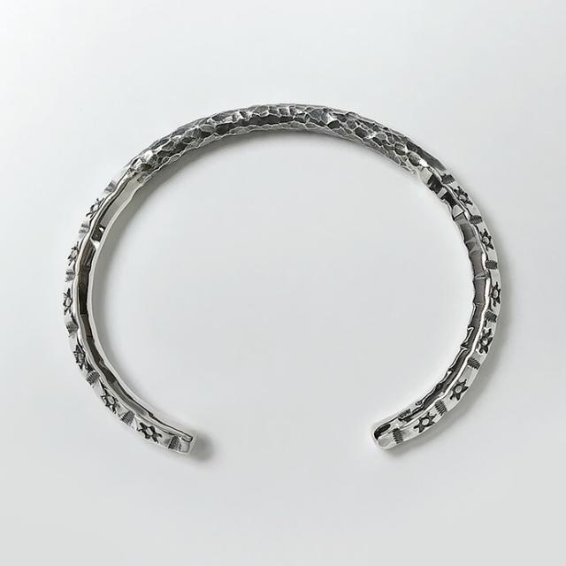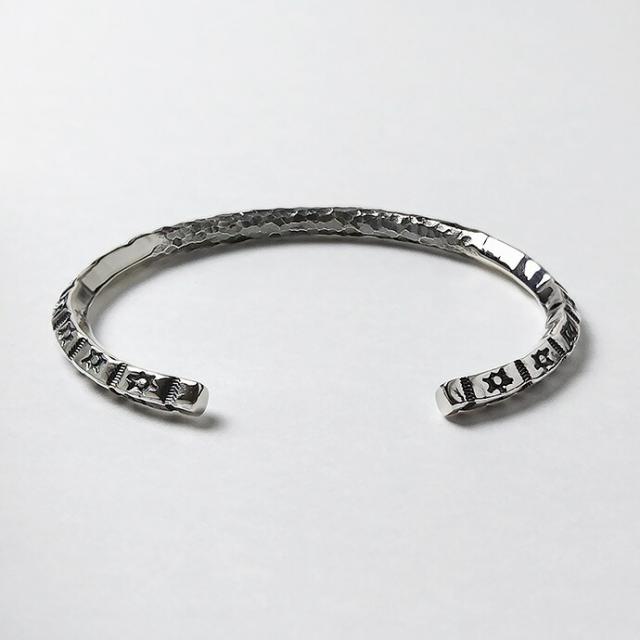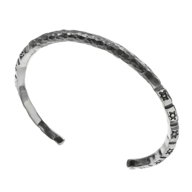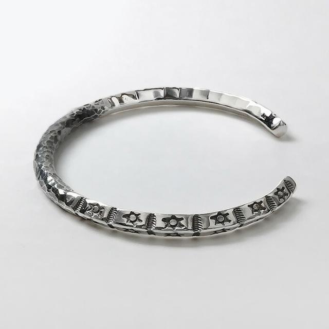 ブレスレット メンズ 槌目 バングル シルバー925 インディアンジュエリー系 ネイティブ柄 細め スタンプワーク風 シルバーブレスレット 20代 30代 40代 50代 銀 ハンマード 太陽 サンモチーフ ネイティブ系 シルバーバングル 重厚感 個性的 無骨 メンズアクセサリー bab-1602