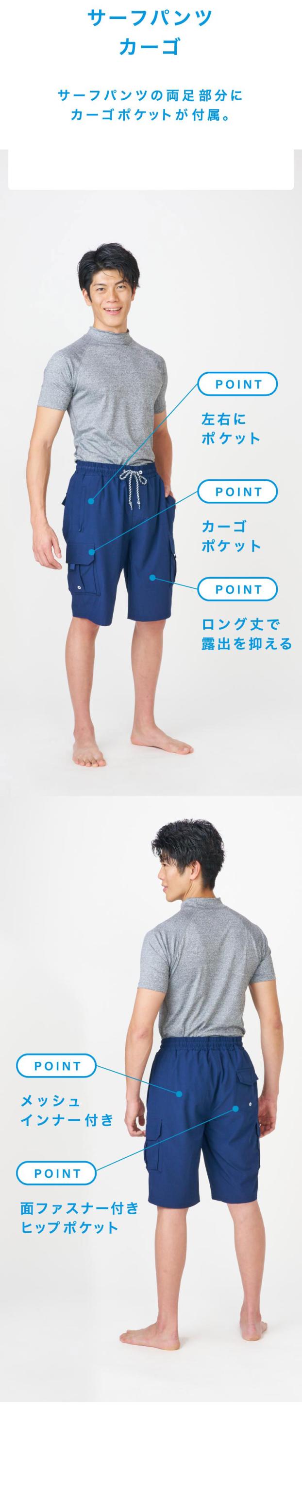 サーフパンツ メンズ カーゴ ロング丈 水着 ボードショーツ 一体型インナー付き 水陸両用