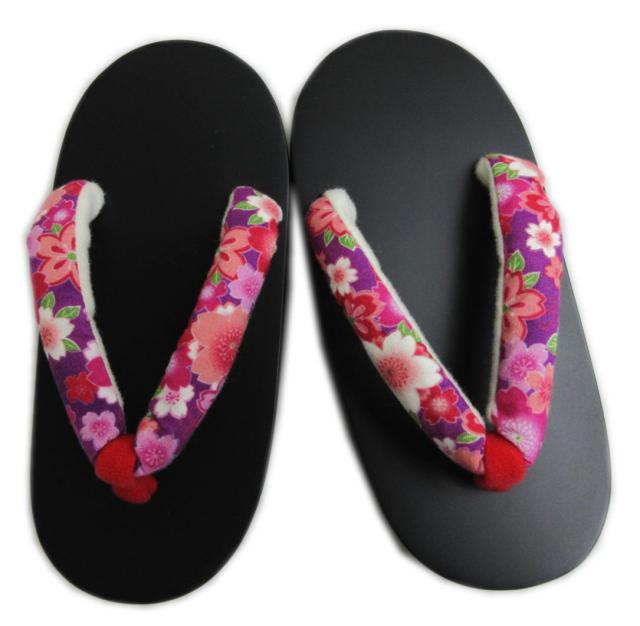 下駄 桐 子供用 キッズ 女の子 黒台 紫色地桜さくら 19.5cm げた ゲタ 浴衣 ゆかた 甚平 女児 19cm 20cm 単品