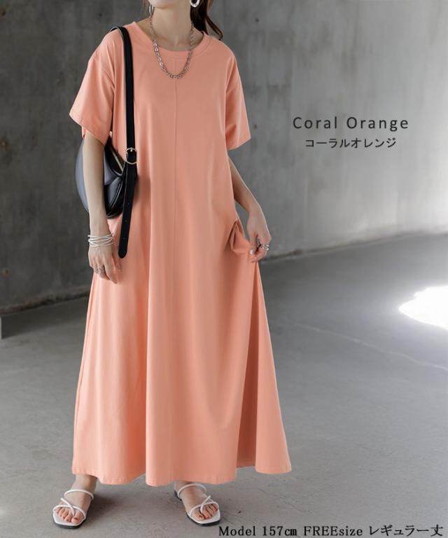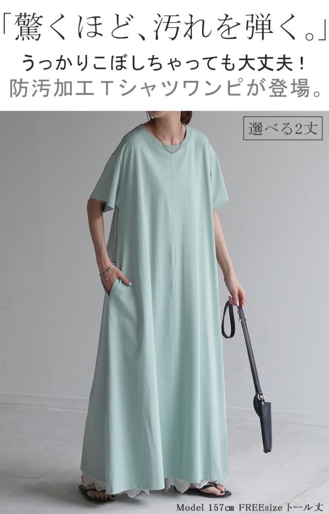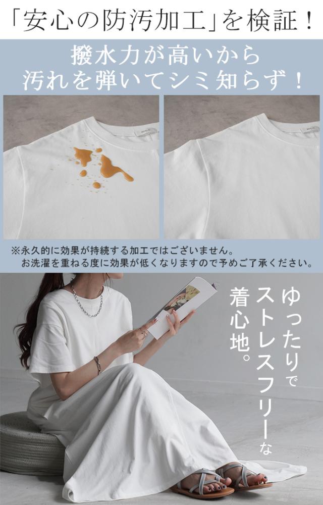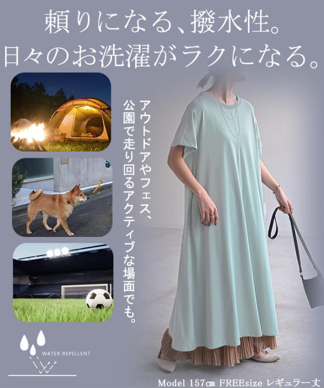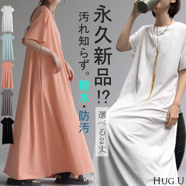 ワンピース 防汚 撥水 ロング 一部4月上旬入荷 レディース Tシャツワンピース ロングワンピース マキシワンピース クルーネック 機能性 半袖 Aライン フレア 汚れ シミ 汚れにくい 梅雨 雨 体型カバー アウトドア はっ水 雨の日 大きいサイズ オレンジ 白 春 夏 HUG.U 秋新作