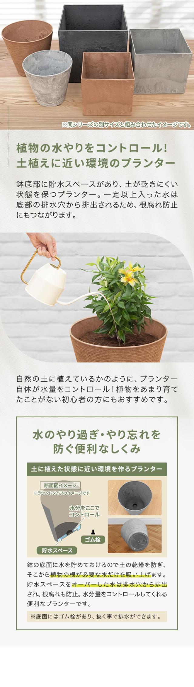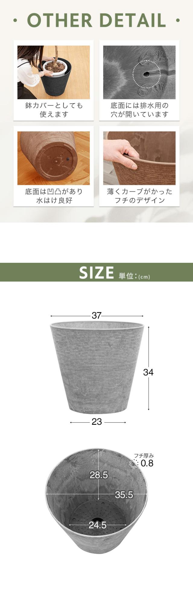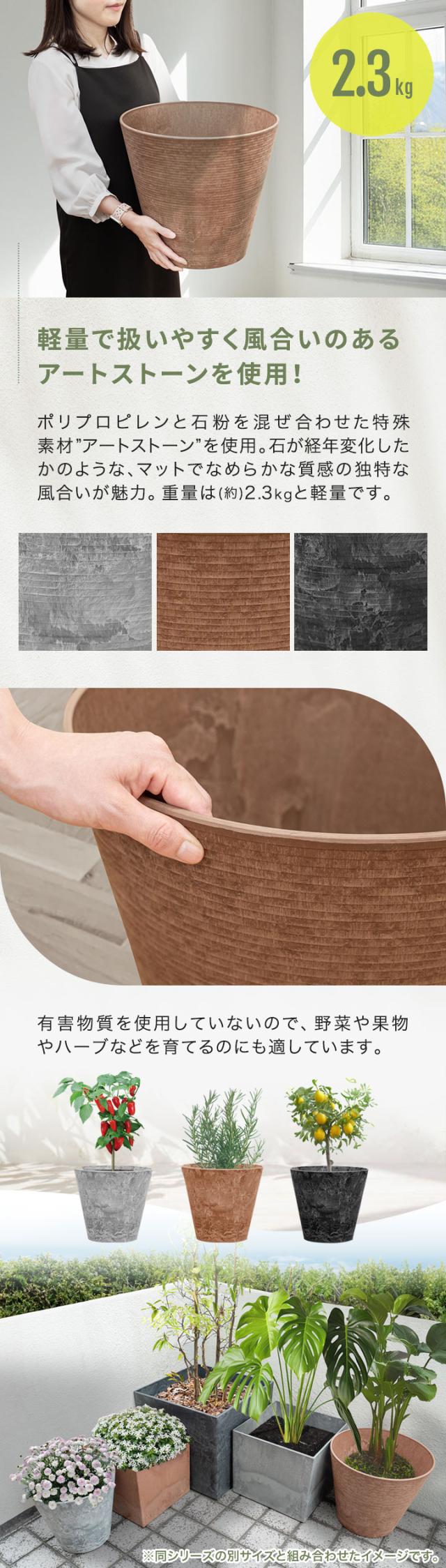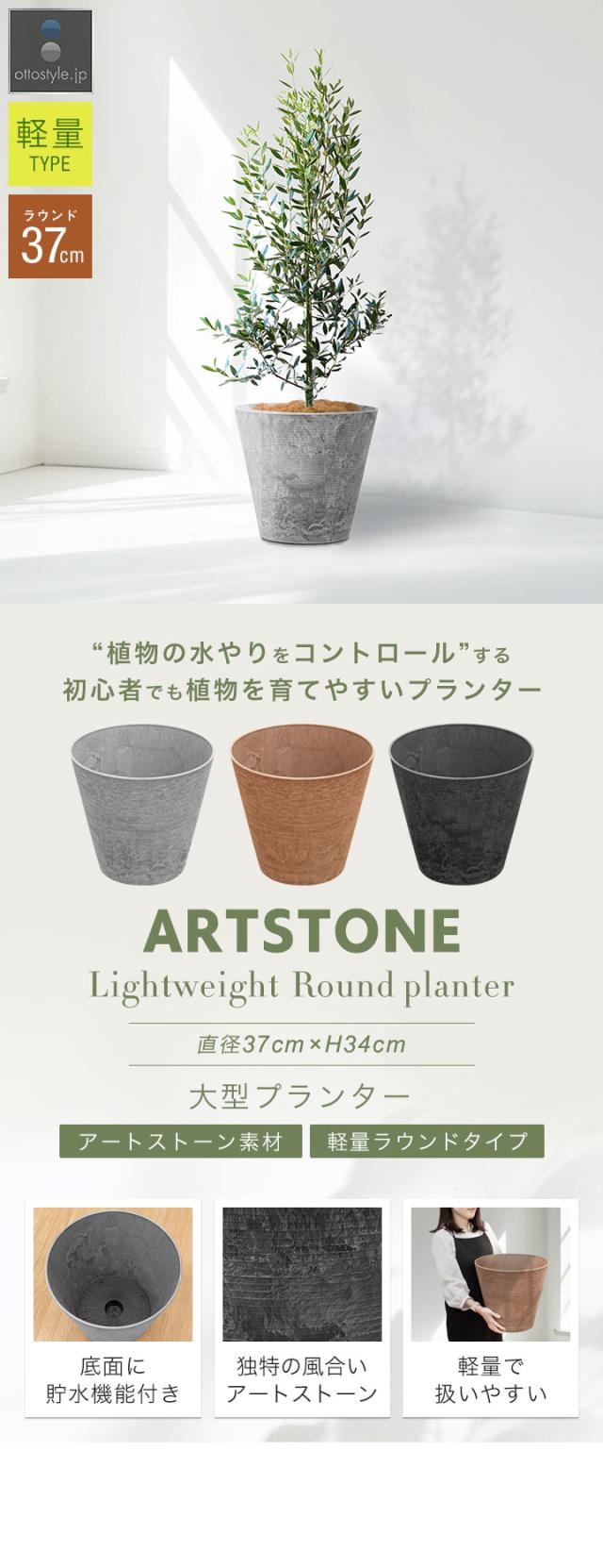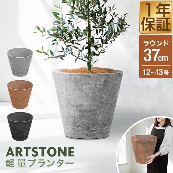 プランター 大型 スリム 直径37cm×34cm 丸 ラウンド プランターボックス 植木鉢 鉢植えカバー プランターカバー 鉢カバー 8号〜12号、13号 室内 屋外 軽量 アートストーン 排水穴 おしゃれ ガーデニング 観葉植物 家庭菜園 1年保証 送料無料