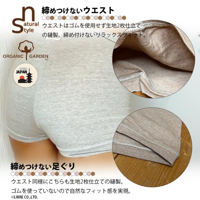 ORGANIC GARDEN ベア天 ソフトホールドショーツ LLサイズ 日本製 インナー 下着 ショーツ パンツ 一分丈ショーツ ノンストレスショーツ ウエスト 足口 ゴムなし お腹まで やさしくフィット 快適 締め付けない ナチュラル 綿糸 オーガニック コットン 区分N 295346-1