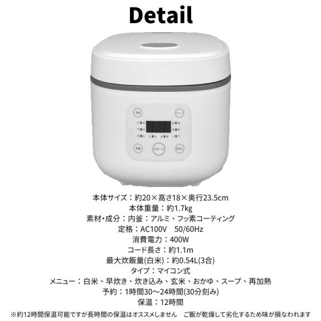 炊飯器 3合炊き 3合 新生活 おしゃれ ホワイト 炊飯ジャー 炊飯 お米 ご飯 洗える 無洗米 早炊き米 おかゆ スープ 保温機能 保温 しゃもじ 料理 調理 一人暮らし 簡単 ふっくら 玄米 お粥 炊込み ごはん 白米