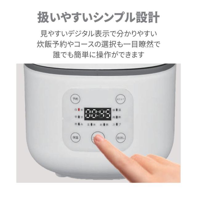 メニュー:白米、早炊き、炊き込み、玄米、おかゆ、スープ、再加熱