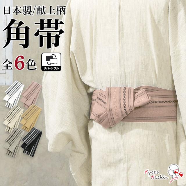 【2枚までメール便送料無料】角帯 男性 帯 リバーシブル 全6色 綿 日本製 献上柄 両面 メンズ 紳士 男性 男物 黒 灰 白 茶 キナリ ベージュ ピンク 和装 着物 袴下 洒落 浴衣 ゆかた 弓道 日本舞踊 居合 剣道 祭り 花火 着付