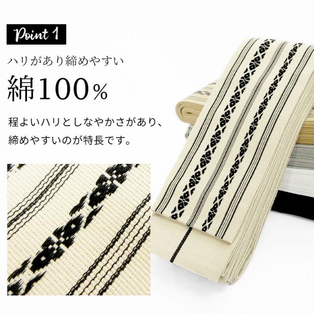 カジュアルな普段着物や浴衣、稽古着など幅広くお使いいただける定番の男帯です。
