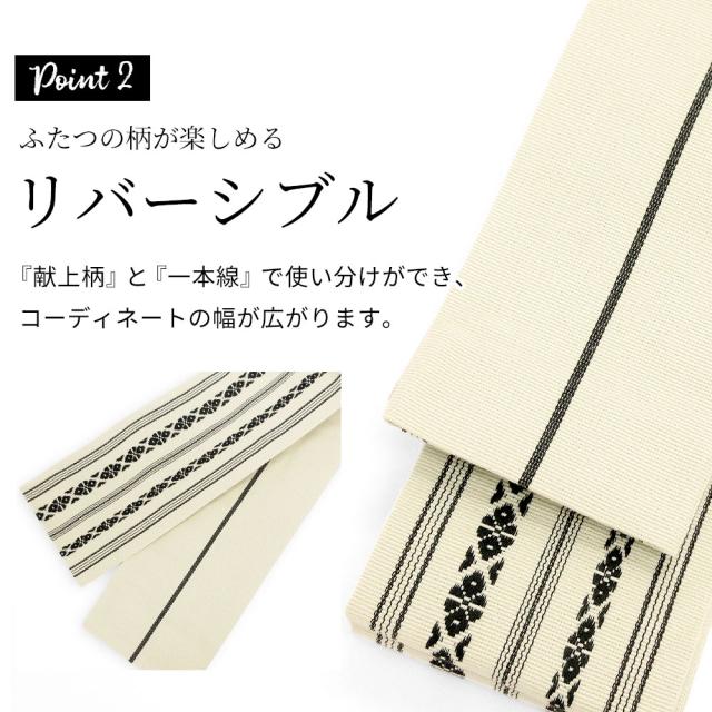 伝統的な『献上柄』とシンプルな『一本線』のリバーシブル仕様。使い分けが出来るので、コーディネートの幅が広がります。