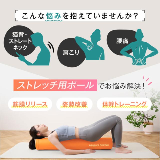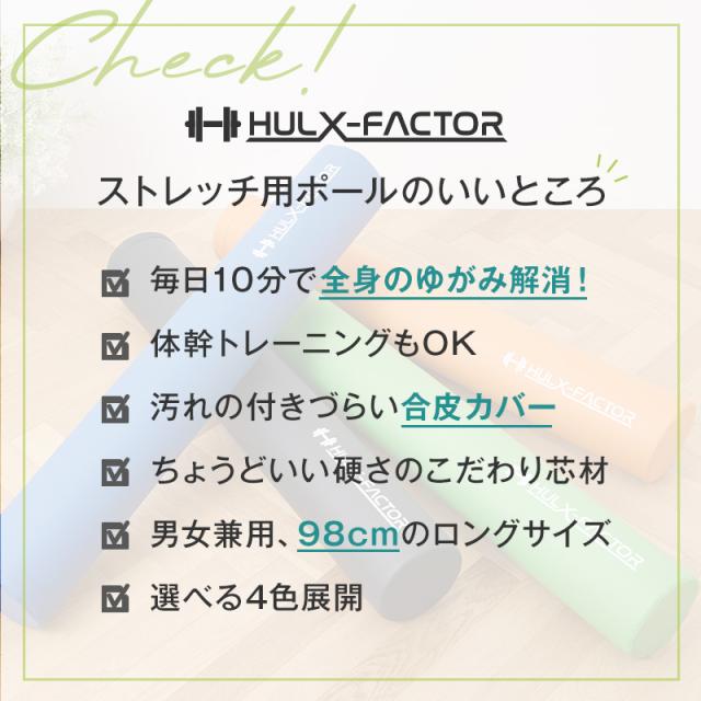 [送料無料]ストレッチ用ポール ハルクファクター【98cm/耐荷重150kg】ボクササイズ ピラティス ヨガ エクササイズポール 高耐久素材 弾力性 男女兼用 ロング ブラック ブルー グリーン オレンジ グレージュ ネイビー アイボリー ストレッチ ローラー おすすめ トレーニング 運動 筋膜リリース 姿勢改善 体幹トレーニング 猫背 ストレートネック 肩こり 腰痛 黒 青 緑 橙 紺 灰 色