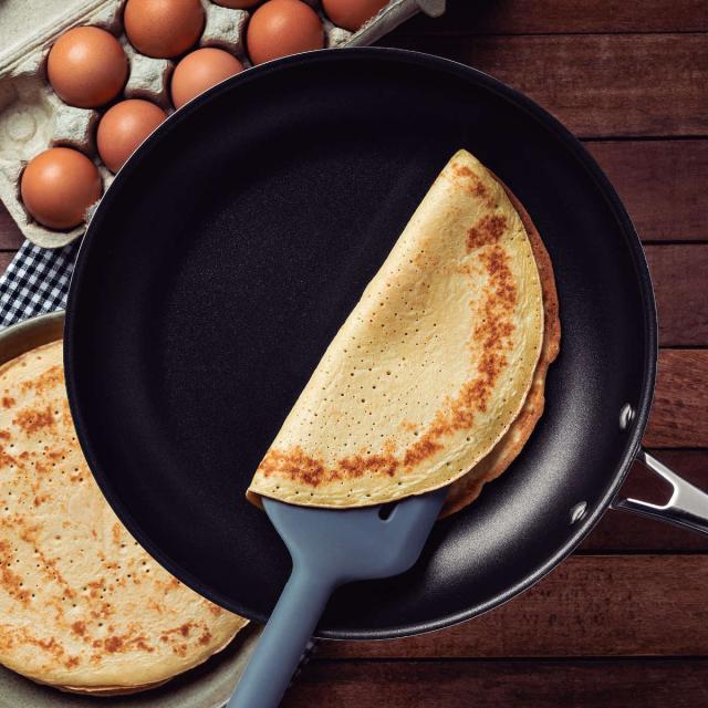 ●フッ素樹脂コーティングが施されているので、こびりつきやすい食材もするんとはがれます。