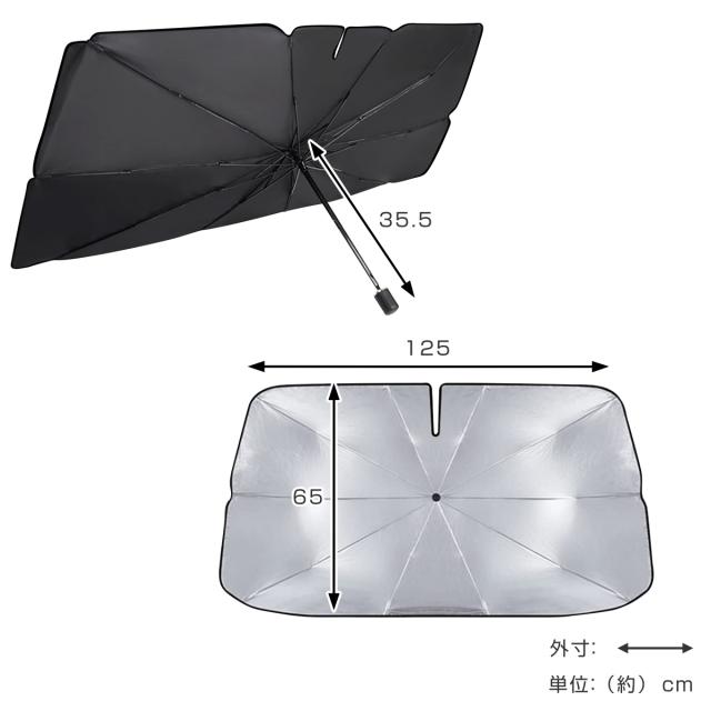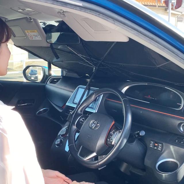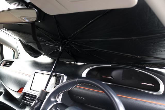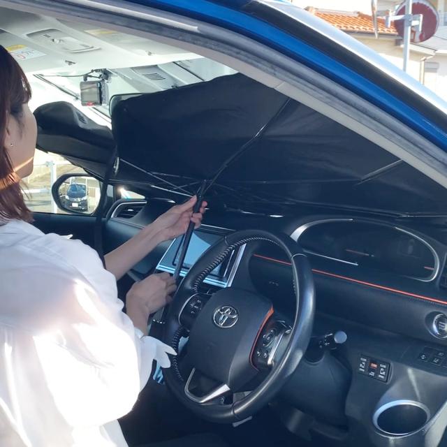 ●傘のように開くだけで簡単にフロントガラスに設置できます。