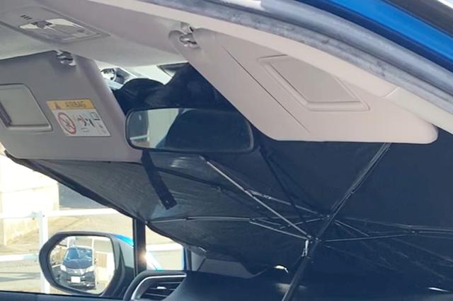 ●傘のように開くだけで簡単にフロントガラスに設置できます。