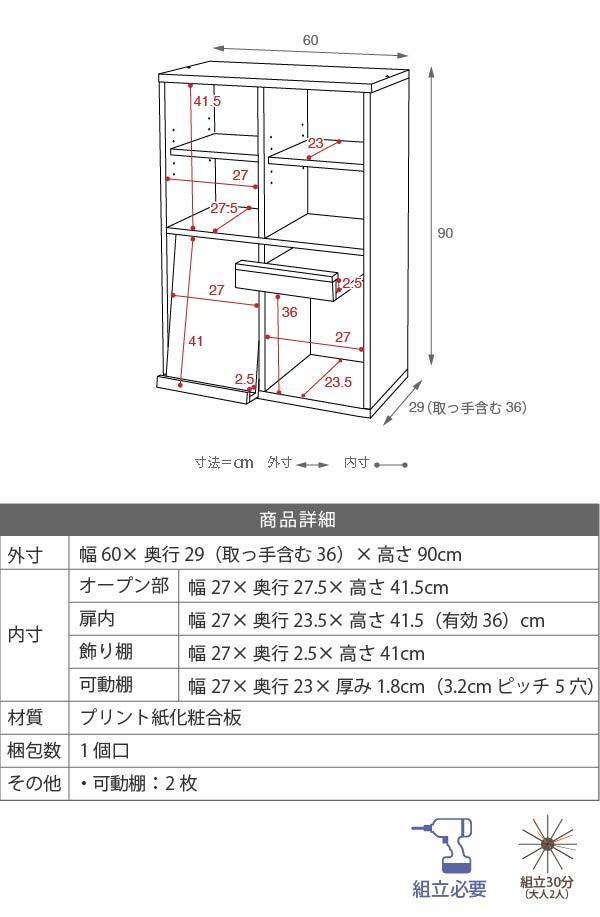 全体:W60 x D29(取っ手含む36) x H90cm