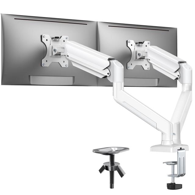 モニターアーム デュアル 2画面 ホワイト 白 17〜32インチ対応 耐荷重各10kg ガススプリング式 ディスプレイアーム PCアーム ロン