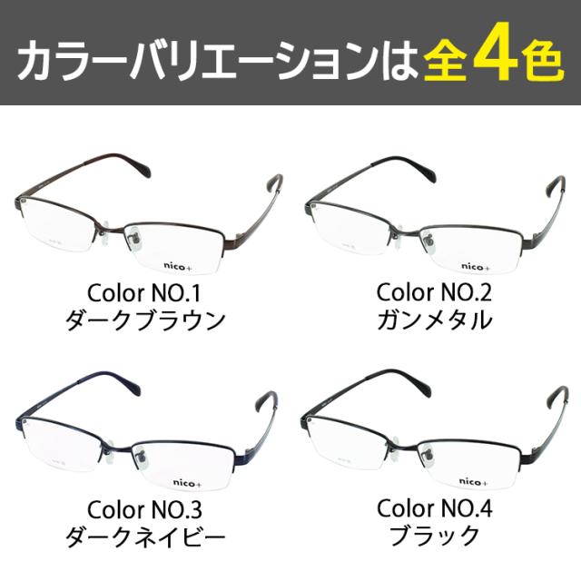 | <フレームカラー> Color.1 ダークブラウン Color.2 ガンメタル Color.3 ダークネイビー Color.4 ブラック | <素材> フレーム材質:メタル合金 テンプル材質:メタル合金 |