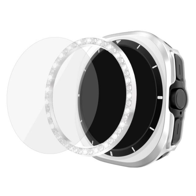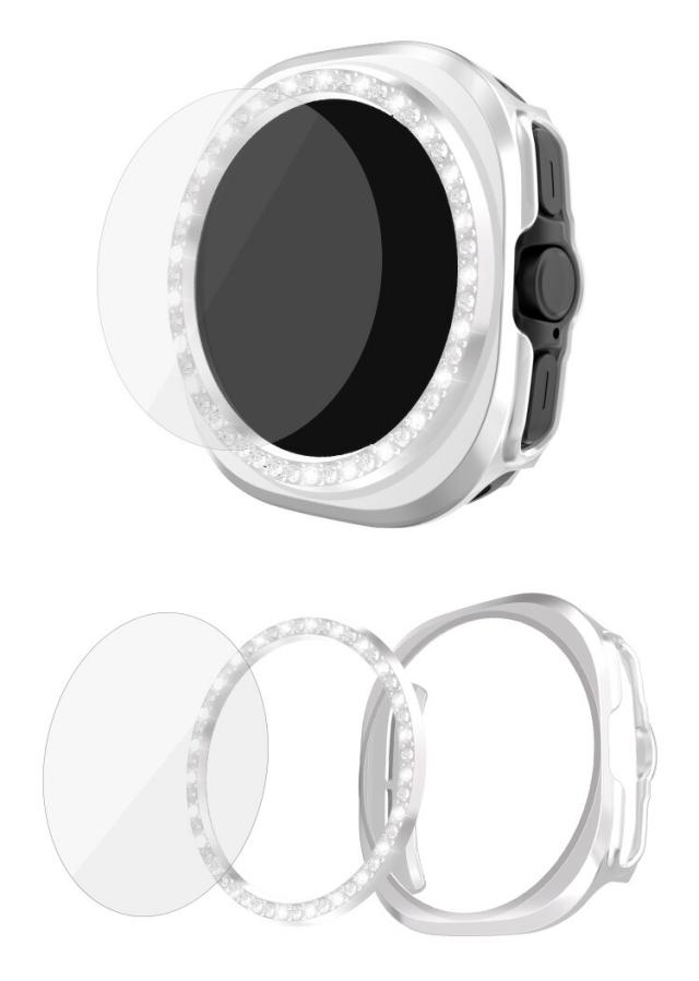 Galaxy Watch Ultra 2025 Ultra1/ 2 Ultra ケース カバー ベゼルリング + 保護ケース + 強化ガラス プラスチック ベゼルリング フレーム 可愛い/かわいい/きらきら ラインストーン エレガント ギャラクシーウォッチ ウルトラ 第1/2世代 47mm 耐衝撃ケース/カバー