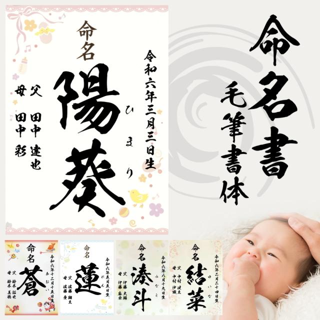 命名書 ピンク (3枚セット) 毛筆 名入れ 命名紙 手書き風 代筆 A4サイズ ラミネート オーダー お祝い 男の子 女の子 記念 出産 ベビー 赤ちゃん 新生児 名付け祝い お七夜 孫 人気 プレゼント 出産祝い