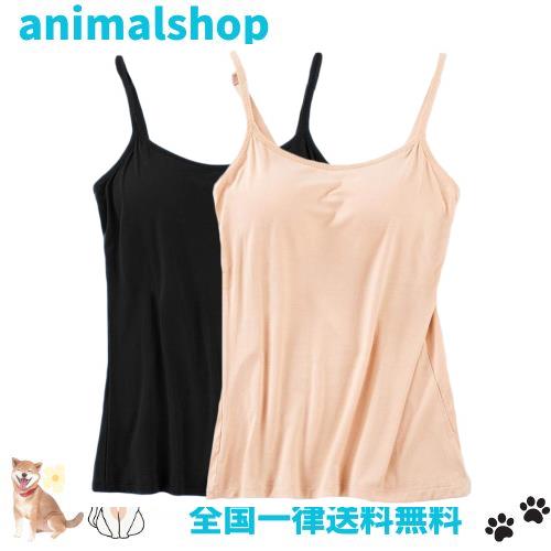 [T WILKER] カップ付きキャミソール 2セット 冷感 さらさら生地 インナー トップス 肩紐調節可 吸汗 肌優しい ブラトップ (ブラック+ベ