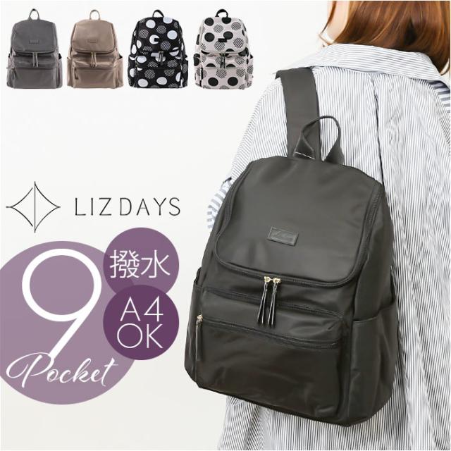 LIZDAYS リズデイズ ナイロン リュックサック 通販 リュック デイパック マザーズバッグ マザーズバック マザーズリュック 大容量 背面ファスナー A4 ポケット多い キャリーオン 多収納 レディース 撥水 はっ水 仕分け 大人 上品 通勤 通学