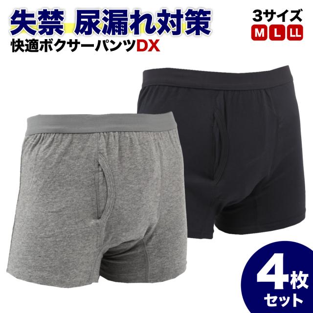 快適ボクサーパンツDX 4枚セット 軽失禁パンツ 尿漏れパンツ 男性用 グレー 紺色(黒に近い) M L LL 失禁パンツ 紳士用 介護 トランクス 介護パンツ 尿漏れ 男性 メンズパンツ 尿漏れ にょう漏れ 男性用 パンツ ンズ 紳士 介護 消臭 尿失禁 下着 吸水 洗濯可能