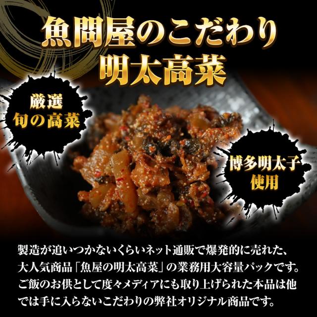 製造が追いつかないくらいネット通販で爆発的に売れた、大人気商品「魚屋の明太高菜」の業務用大容量パックです。