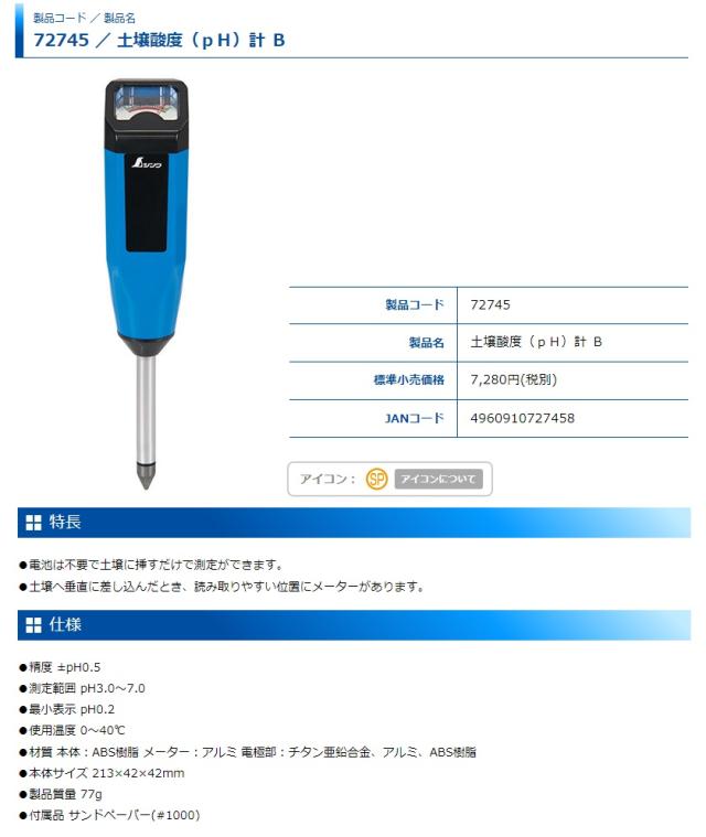 シンワ 土壌酸度(pH)計 B 72745 測定範囲pH3.0〜7.0 Shinwa 送料無料 小型便 在庫