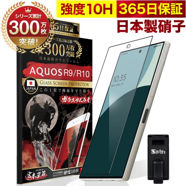 AQUOS R10 R9 SH-51F SH-51E 全面保護 ガラスフィルム 保護フィルム フィルム 全面吸着タイプ 10H ガラスザムライ アクオス 全面 保護 液晶保護フィルム OVER`s オーバーズ 黒縁 TP01