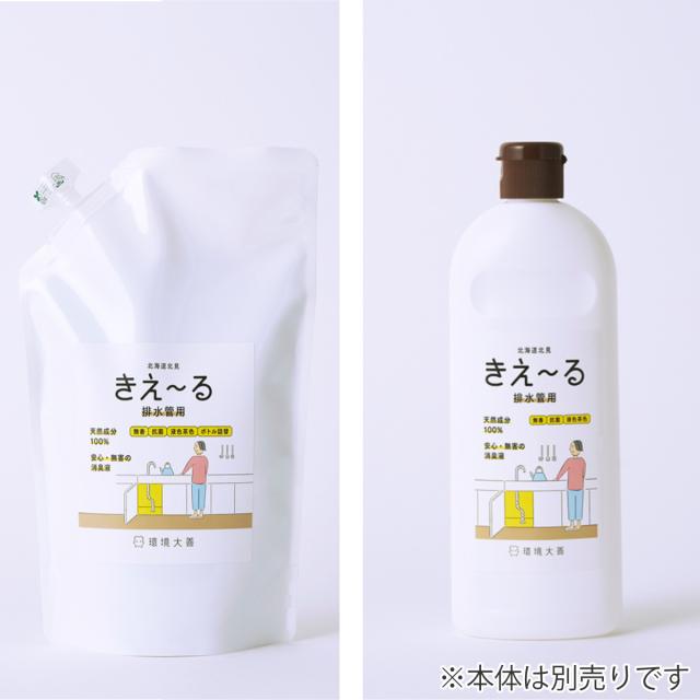 便利な詰替え用1Lです。「きえ〜る排水管用」の使用済みボトルに詰め替えてご使用ください。
