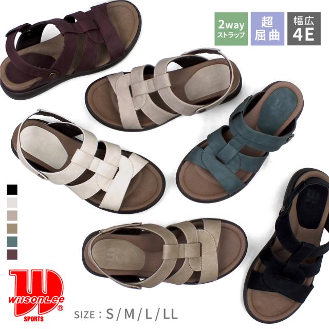 WILSON LEE SPORTS-ウィルソンリースポーツ-“足にやさしく(SOFT&FIT)”をコンセプトに、快適性を追求するシューズブランド。です。アンティーク調に仕上げた素材にコロンとしたソールが大人可愛いぺたんこサンダル。移動式の甲ストラップは前にずらせば多重ベルトの楽ちんミュールに、後ろに移動させればネックストラップとしても使える2wayデザイン。ストラップの付け根はゴムになっており伸縮性があるので脱ぎ履きしやすく足にしっかりフィットします。屈曲性抜群の反りの良いアウトソールで歩行がとても滑らかに。4Eの幅広設計でゆったりとした履き心地をお届けするコンフォートサンダルです。