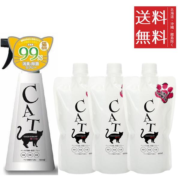 ビーブラスト B-blast ペットの消臭・除菌スプレー 猫専用 本体 450ml &【3個】詰替え用 450ml セット まとめ買い 日本製 国産 ペット用消臭剤 送料無料