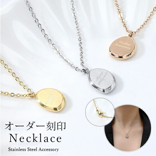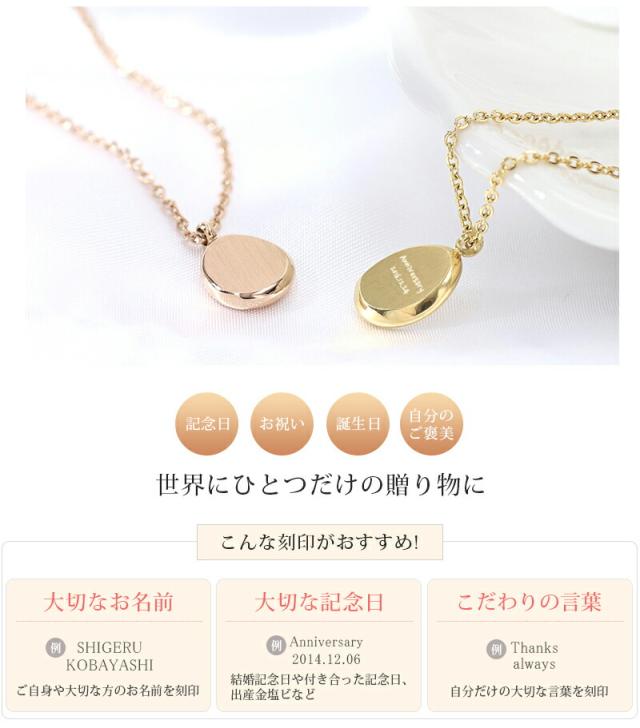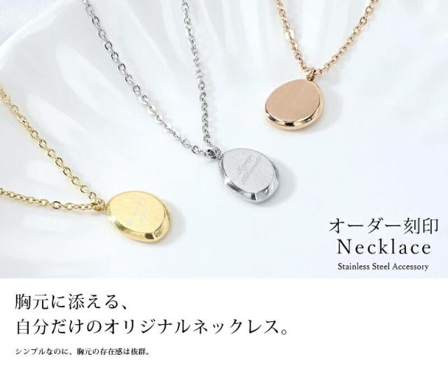 刻印プレートネックレス ペンダントネックレス【名入れ無料】名入れ ステンレス 小豆チェーン 3色 シルバー ゴールド ローズゴールド 大人 刻印 シンプル 女性 贈り物 ネーム aruon 名入れ工房