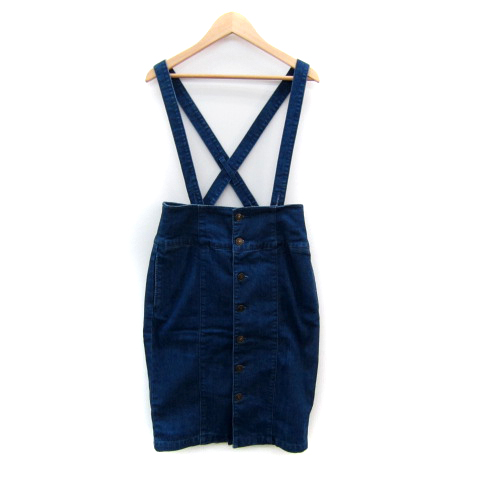 【中古】ダズリン デニムタイトスカート ボタンダウンスカート スリット サスペンダー付 S 青 ブルー レディース