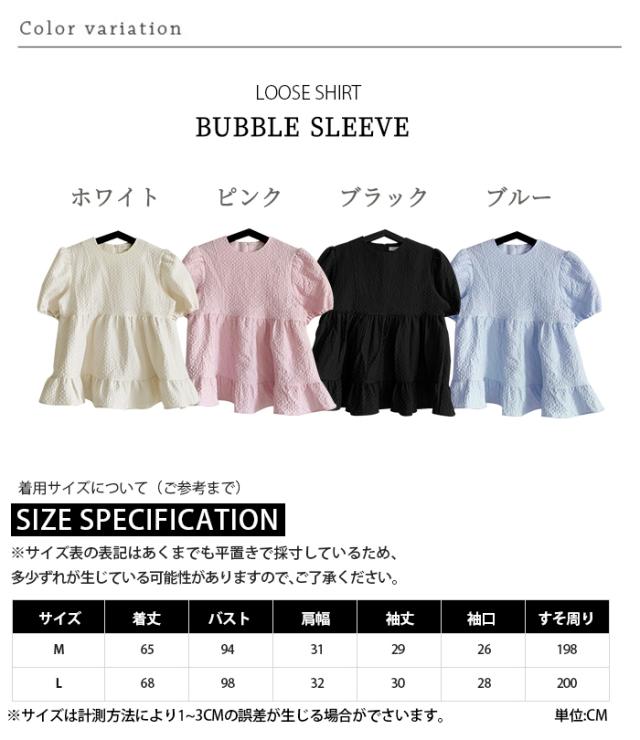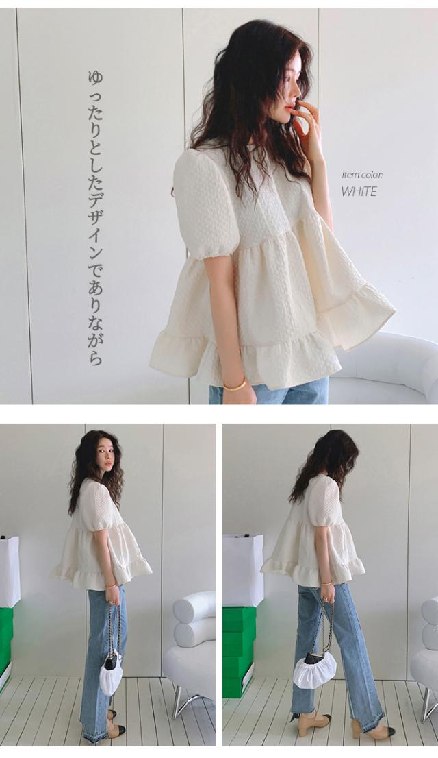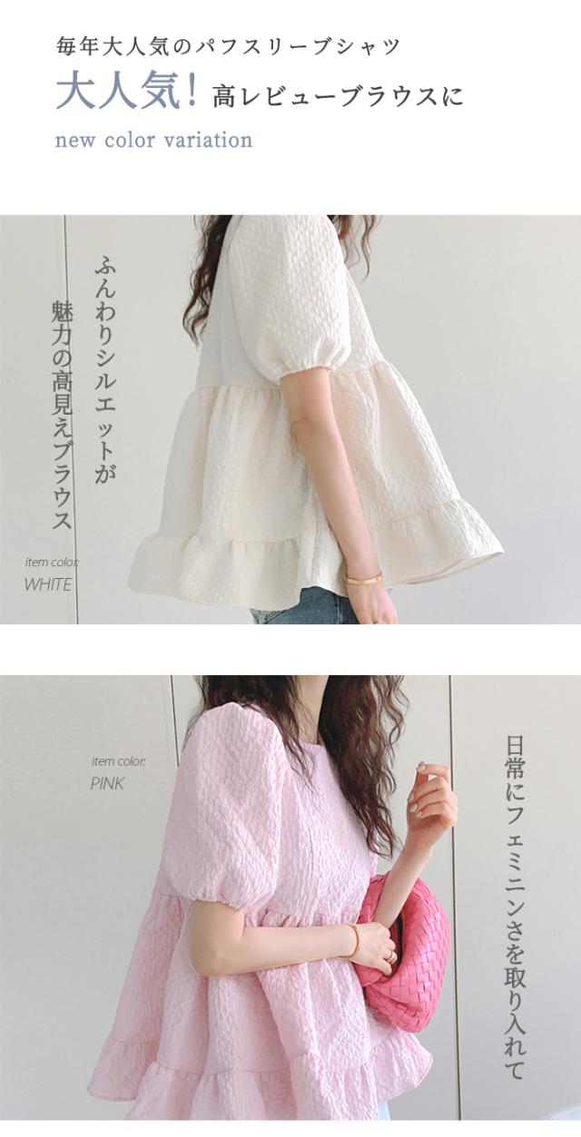 ブラウス シャツ レディース パフスリーブ ラウンドネック チュニック 半袖 ゆったり 体型カバー シャツブラウス フリル プルオーバー トップス