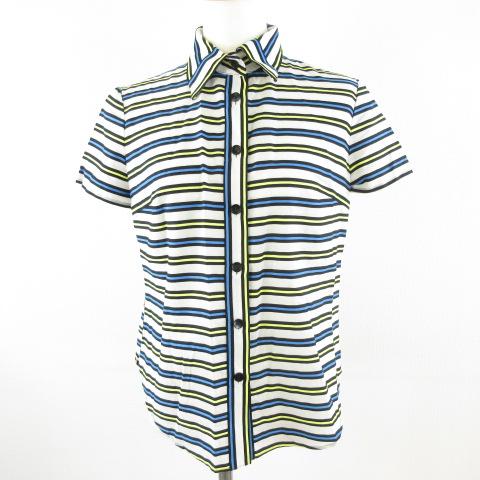 【中古】タエ アシダ TAE ASHIDA シャツ ブラウス 半袖 ボーダー 白 黒 青 7 *A510 レディース