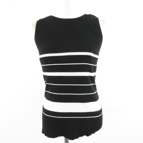 【中古】ミラオーウェン Mila Owen ノースリーブリブニット ボーダー 黒 白 0 *A520 レディース