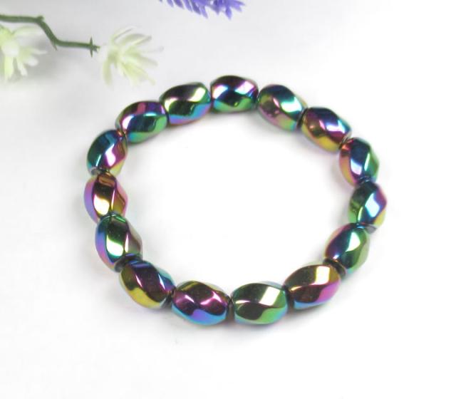ヘマタイト 11mm ツイスト ブレスレット レインボーカラー カラーメッキ 強いグラウンディングと保護 B1hema518