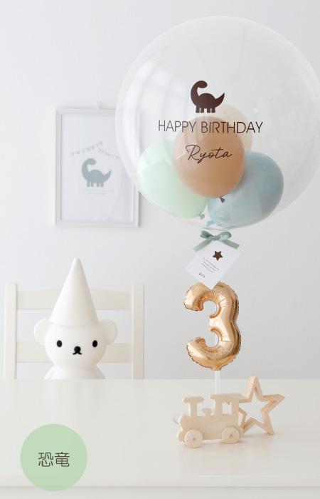 男の子が大好きなモチーフ、車、恐竜、汽車をイメージした誕生日バルーン。