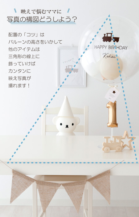 子供の誕生日に記念になる可愛い写真を撮りたいけど、風船がくるくる回ってうまく撮影ができない人に。スタンドタイプなので、お子さまの記念撮影にぴったりです。