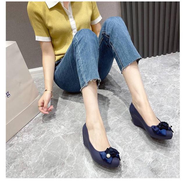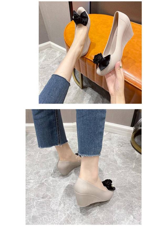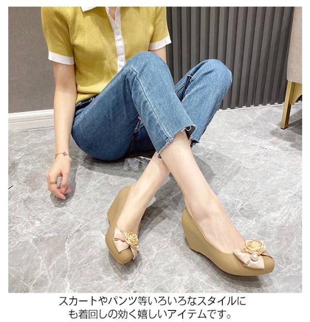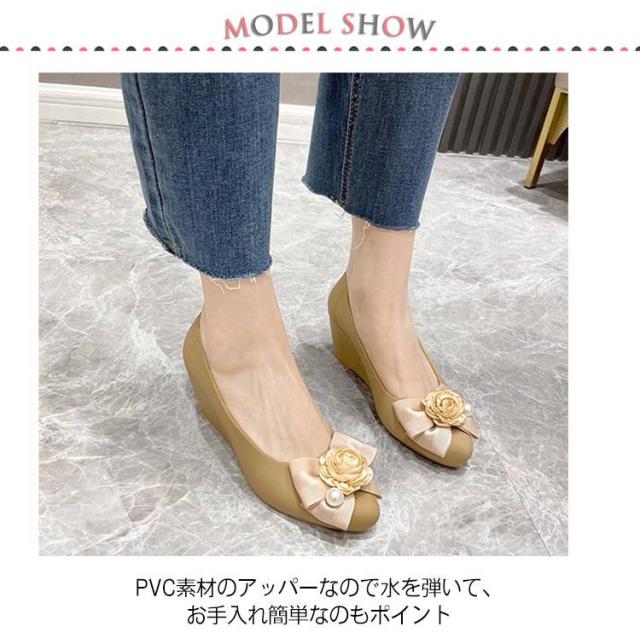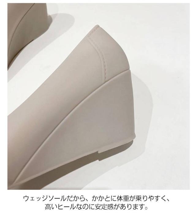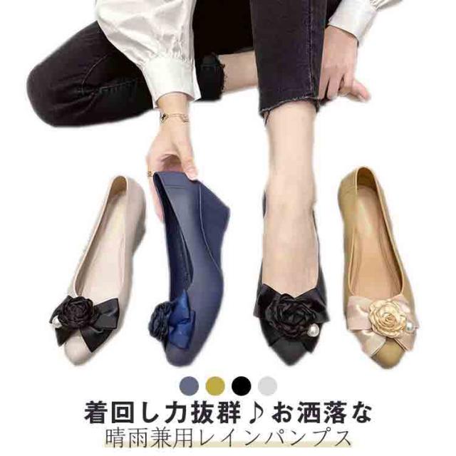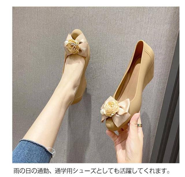 撥水 防水 レディース アウトドア リボン ウェッジソール レインパンプス ポインテッドトゥ 雨靴 パンプス 防水 脚長 美脚 滑りにくい 晴雨兼用 レインシューズ 通勤 お洒落