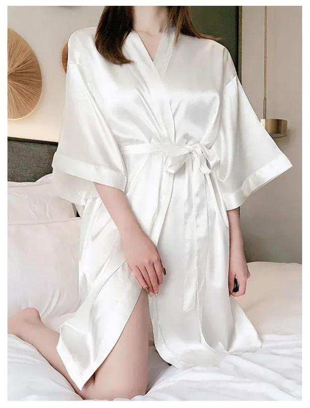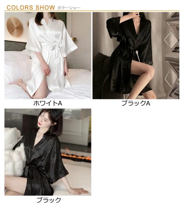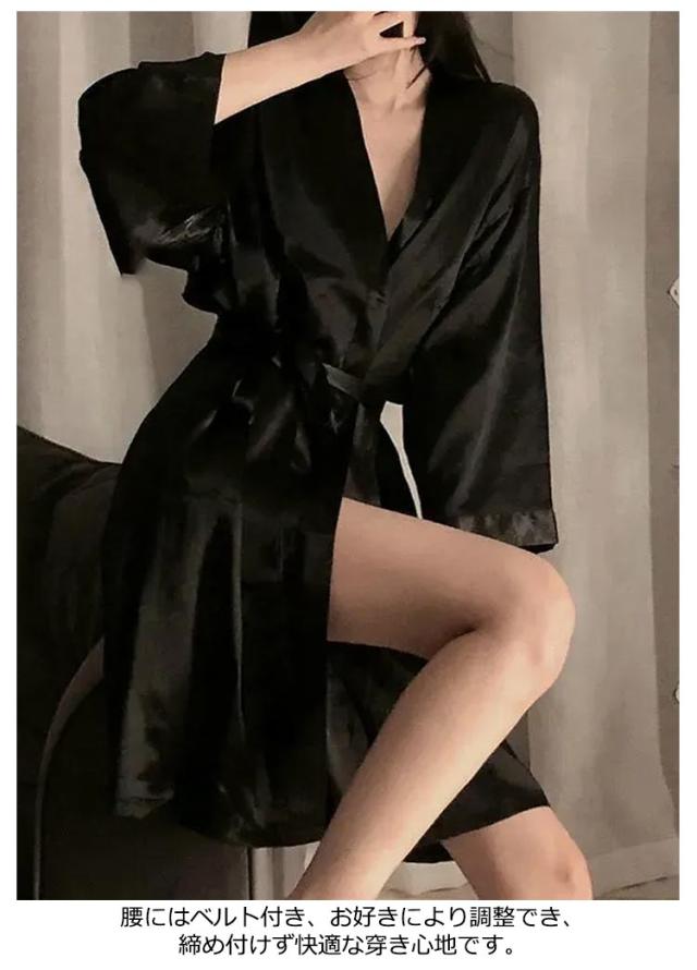 ネグリジェ パジャマ 夏 Vネック 吸汗速乾 バスローブ 光沢感 7分袖 ミディアム丈 ナイトガウン 寝巻き ルームウエア ゆかた 涼しい レディース ナイトウエア 寝間着 バスローブ 薄手 柔らかい 部屋着 ウエスト紐 夏